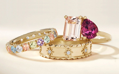 Color is the new black—and we’re seeing bold hues take over in fashion. In jewelry trends, “Vibrant colored stones are taking center stage, offering a fresh alternative to traditional diamond rings,” notes Chen. “Gemstone rings allow wearers to express individuality through unique hues and bold color pairings.” Rings featuring gemstones like sapphires, emeralds, and rubies are highly sought-after, bringing a personal and eye-catching twist. Unique combinations, such as mixing bright, contrasting gemstones within a single setting, are also trending, allowing wearers to experiment with different color palettes. Colorful rings are not only a stylish statement but also a way for wearers to convey their individuality and personal style.