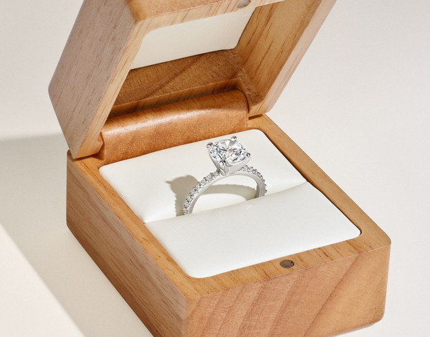 1. Gift Wrap: Purchase the ring several weeks before the 25th and wrap the jewelry in slightly larger packaging. You can add more boxes (and cute clues) for laughs. Without the tell-tale outline of the ring box, your partner will be caught off guard when they rip off the final wrapping paper to reveal their ring.